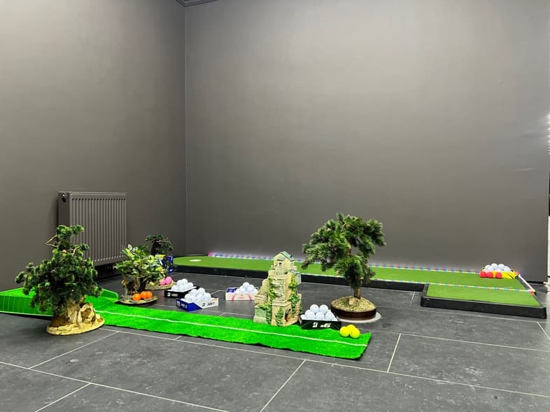 Этот тренажер максимально точно имитирующий игру на грине. На дорожке можно проводить мастер классы по игре в гольф, различные конкурсы и соревнования. Дорожка может быть украшена тематически под любой индивидуальный запрос, самолеты, поезда, автомобили, игрушки и т.д.