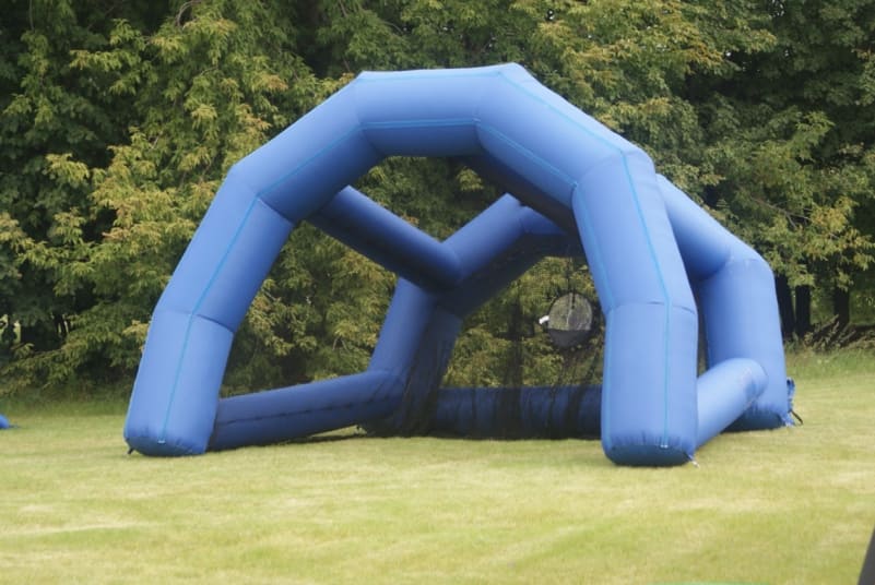 Это большая надувная ловушка для мячей. Позволяет выполнять удары любой силы, что дает возможность провести мастер класс по большим ударам гольфа и освоить технику удара. Так же в паре с баблом используется переносной радар, который считывает всевозможные показатели удара и выстраивает виртуальную траекторию полета в специальной программе на электроном носителе.
